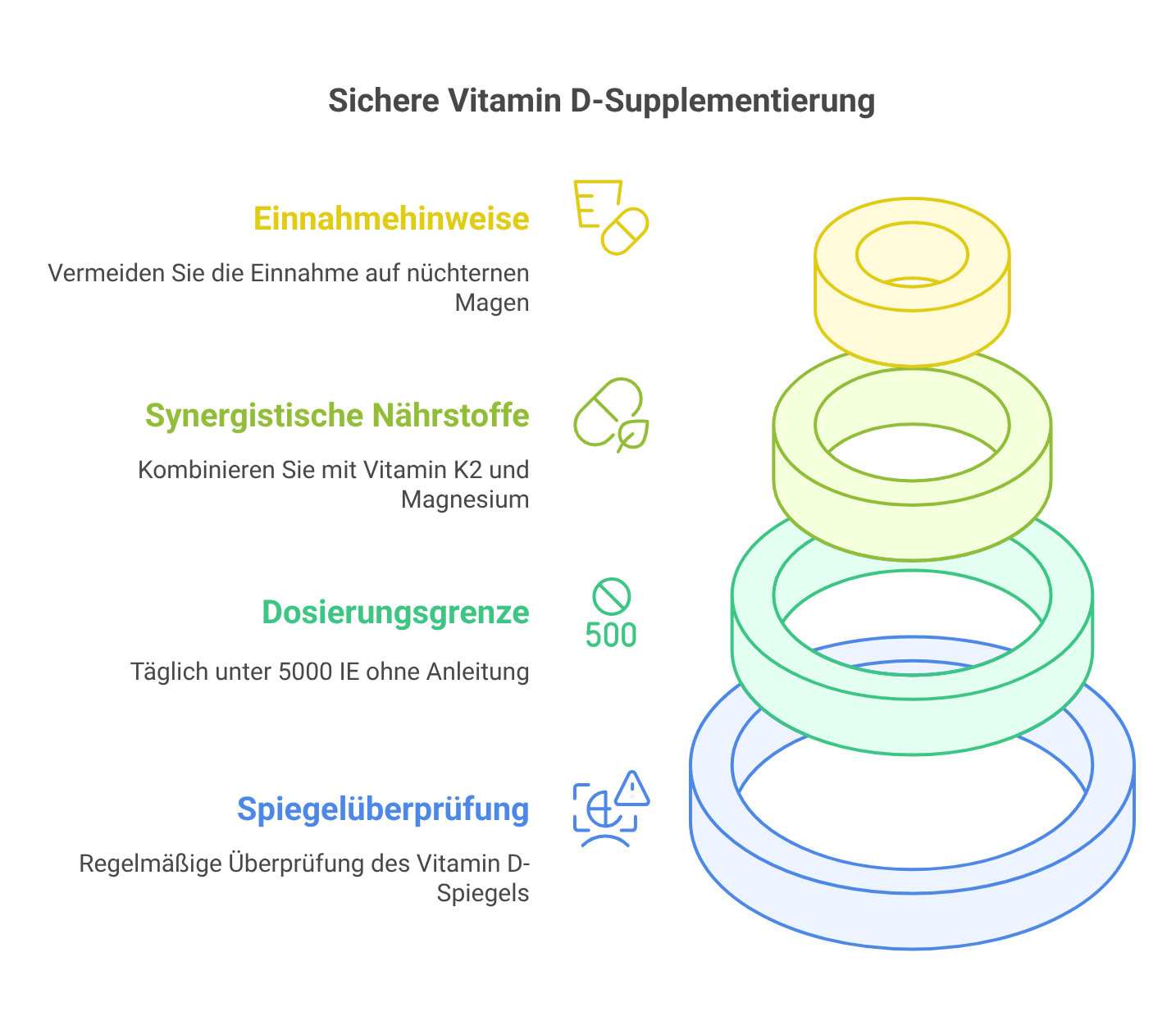 Vitamin D ist essentiell für unsere Gesundheit, aber seine Supplementierung erfordert Vorsicht und Sachverstand. Bleiben Sie innerhalb der empfohlenen Dosierung von 4000 IE täglich und lassen Sie sich bei höheren Dosen ärztlich begleiten.